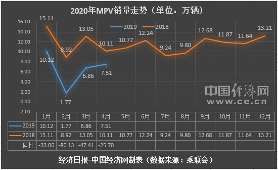 近兩個月,我國汽車市場開始出現“V”型反轉,乘用車市場綜合銷量降幅已在4月收窄至5.6%,但MPV市場的表現仍不樂觀。乘聯會數據顯示,4月MPV市場銷量僅為75136輛,同比仍有26.4%的降幅,1-4月累計銷量260002輛,同比下降45.3%。乘聯會秘書長崔東樹預測,今年MPV市場又會有一個較大幅度的下跌。
