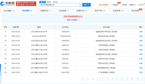 目前,恒大地產集團有限公司被執行總金額已超226億。