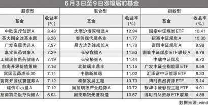 股 票 型醫(yī)藥主題基金領(lǐng)漲