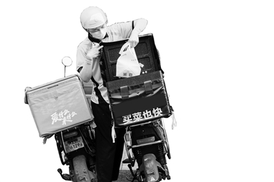 周末的下午四點半,雖然未到飯點沒有客人就餐,不過主打精致川菜的餐廳“贈李白”的服務(wù)員已經(jīng)開始忙碌準備線上外賣訂單:一份份餐食制作打包貼上食安封簽,然后被掃描訂單上的條形碼并放到出餐臺上,只等外賣員過來取餐配送。