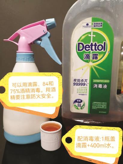 那么,可以馬上把物資搬回家嗎?且慢!請把消毒水放在家門口,所有物品進(jìn)屋前要消毒,并靜置20分鐘左右,然后扔掉外包裝。