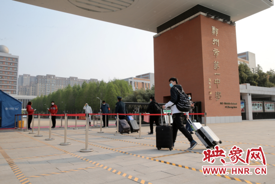 上午8點,在鄭州市第一中學校門口,學生們分批次、分時段陸續到達,秩序井然。