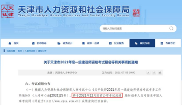 但是天津市人力資源和社會保障局在7月初發(fā)布的《關(guān)于天津市2021年度一級建造師資格考試報(bào)名等有關(guān)事項(xiàng)的通知》顯示,一建成績將在12月底在中國人事考試網(wǎng)進(jìn)行公布。