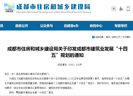 近日,成都市住房和城鄉建設局關于印發成都市建筑業發展“十四五”規劃的通知,其中在“十四五”時期建筑產業隊伍建設中提出,新增萬名以上一級注冊建造師。