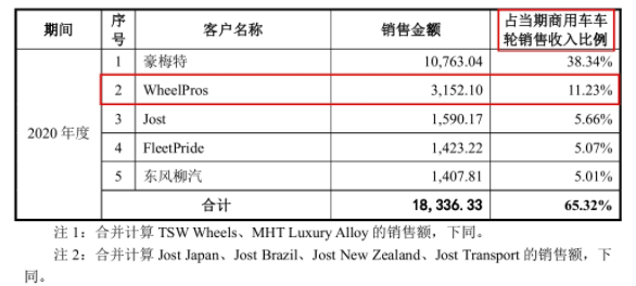 一輪問詢回復(fù)說明了宏鑫科技細分業(yè)務(wù)對應(yīng)主要客戶的基本情況,包括但不限于成立時間、注冊資本、銷售模式、銷售金額及占比等。一輪問詢回復(fù)第275頁顯示,2020年度宏鑫科技向客戶WheelPros, LLC.(下稱:WheelPros)銷售商用車車輪的金額為3,152.10萬元。