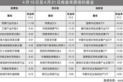 混合基金方面,4月15日至21日期間,4098只基金的平均收益率為-3.21%,收益為正的基金有79只。值得一提的是,跌超5%的基金多達811只,更有8只基金跌超10%。