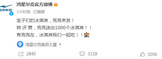 近日,“寶馬mini冰激凌”事件引起全網熱議。4月21日,鴻星爾克官方發布公告稱:寶子們的冰淇淋,克克來發!據了解,此次活動共計發放1000份冰激凌,并且不對內部員工發放。