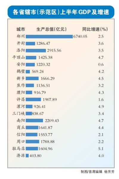 - 上半年河南有13城GDP超過千億元 駐馬店、漯河等8城GDP增速超過4%