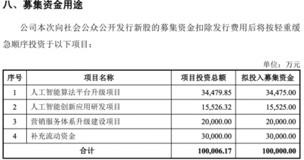 去年11月,格靈深瞳在科創板順利過會,擬于科創板上市,海通證券擔任公司主承銷商。根據此前披露的招股書,格靈深瞳擬募資約10億元,將主要用于人工智能算法平臺升級項目、人工智能創新應用研發項目、營銷服務體系升級建設項目以及補充流動資金。