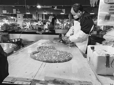 菜場(chǎng)里的香腸生意火爆中,除了傳統(tǒng)口味的灌腸受到歡迎,一些特色灌腸也成為人們的新寵,蝦仁腸、金槍魚(yú)腸、墨魚(yú)腸、芥末腸等均有不錯(cuò)的銷量。甚至還有商家推出了一種灌腸與咸蛋黃結(jié)合的特色小吃“鳳凰盞”,一月至今已售出2000多件。