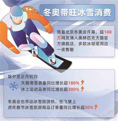 昨天的一場(chǎng)大雪,讓新年開工首日的“打工人”很是驚喜,也為剛落下的春節(jié)假期畫上完美句號(hào)。這個(gè)遇上冬奧會(huì)的春節(jié),帶來了太多不一樣的新奇體驗(yàn):冬奧吉祥物冰墩墩的周邊產(chǎn)品幾乎“秒空”、天貓滑雪裝備同比增長超180%、京東滑雪運(yùn)動(dòng)類商品整體成交額同比增長322%……可以說,北京冬奧會(huì)就像一劑催化劑,極大促進(jìn)了中國冰雪產(chǎn)業(yè)的發(fā)展。