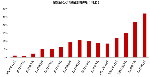 受到毛坯鉆石價格高昂、供應短缺的影響,國際成品鉆石價格繼續上漲。IDEX公開的數據顯示,2月成品鉆石價格指數上漲了4.27%,創下近十年來的歷史新高。