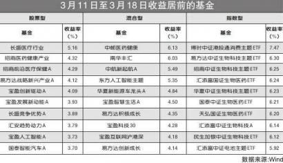 股 票 型重倉醫藥生物基金領漲