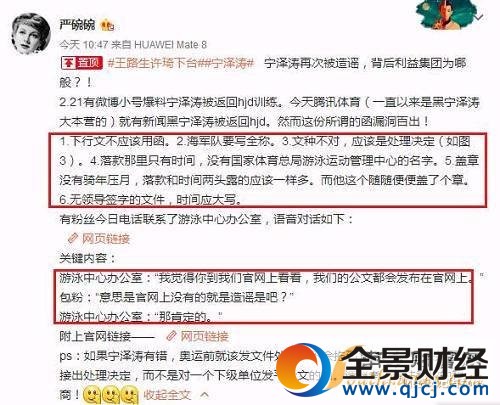 寧澤濤離開國家隊 網友列舉了函件中的六大漏洞稱這是在造謠。