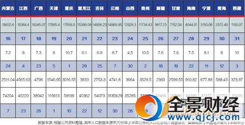 2016年全國31省市GDP總量/GDP增速/人均GDP三大指標排名