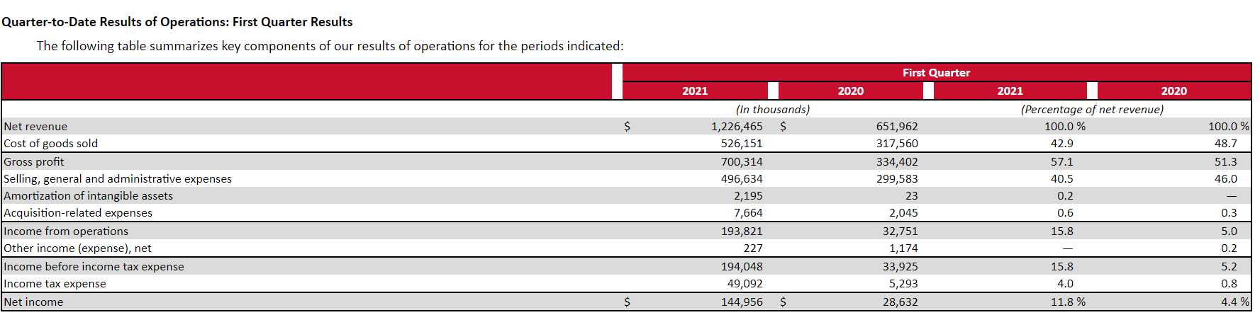 第一財(cái)季,公司營收12.27億美元,上年同期為6.52億美元,同比增長88%;毛利率為57.1%,上年同期為51.3%;凈利潤為1.45億美元,上年同期為2863萬美元,同比增長406.3%;基本和攤薄后每股收益均為1.11美元。