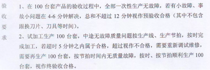 陳靜良向記者表示:“根據(jù)合同約定,上述生產(chǎn)線應在紐威數(shù)控安裝調(diào)試好,預驗收時需提供8個產(chǎn)品、各產(chǎn)品100件驗收生產(chǎn)件,并應于2014年9月完成。”