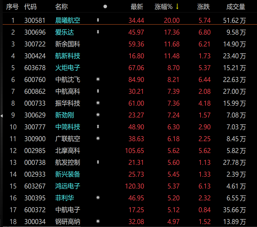 中證軍工指數今日上漲3.96% 晨曦航空漲20%