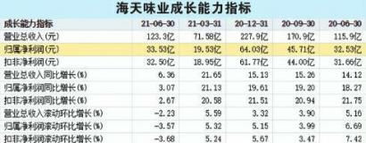 海天味業(yè)2021年半年報(bào)顯示,公司上半年實(shí)現(xiàn)營業(yè)收入123.32億元,同比增長6.36%;歸母凈利潤33.53億元,同比增長3.07%。相比于上市以來每年保持15%的收入增長率和20%的利潤增長率,海天味業(yè)的上半年業(yè)績讓市場大跌眼鏡。