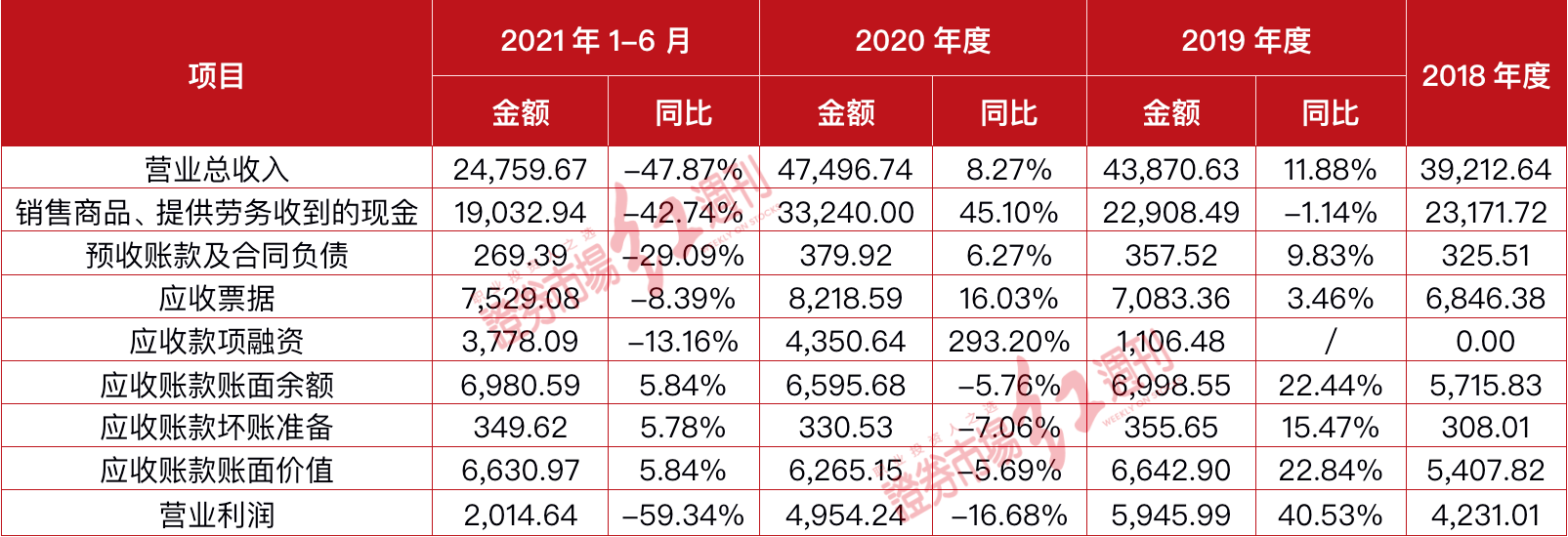 2020年,漢維科技銷售商品、提供勞務(wù)收到的現(xiàn)金為33240.00萬元,而預(yù)收賬款及合同負債較上期僅增加了22.40萬元,剔除該部分影響后,則當期與營收相關(guān)的現(xiàn)金流入金額約為33217.60萬元。將這一數(shù)據(jù)與當期的含稅營收勾稽,不難發(fā)現(xiàn),該金額比同期含稅主營業(yè)務(wù)收入少了20453.72萬元,理論上這會導(dǎo)致當年經(jīng)營性債權(quán)有相應(yīng)規(guī)模的增加。