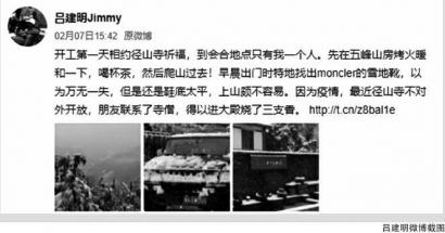 前前后后修改了5次,相關(guān)微博依然受到了網(wǎng)友熱議。因?yàn)樵谝咔槠陂g,杭州部分寺廟一直處在封閉狀態(tài),包括此次呂建明前往的徑山寺,也剛在2月4日發(fā)出了“繼續(xù)實(shí)行‘雙暫停’”的通知,即暫停開放場(chǎng)所、暫停一切集體宗教活動(dòng)。