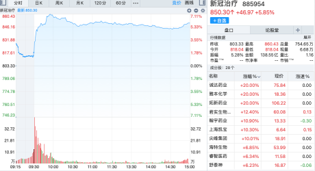 圖1:新冠治療概念2月14日表現(xiàn)情況