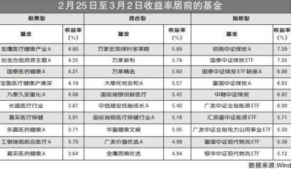 混合基金方面,2月25日至3月3日,4011只基金的平均收益率為-0.01%,收益為正的基金共有1948只,占比接近五成。其中,漲幅超過5%的基金有8只。