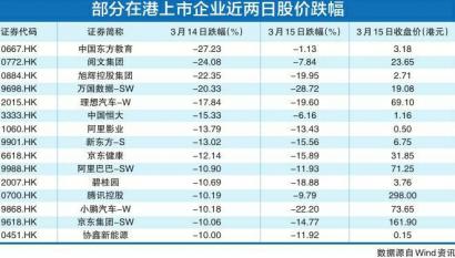 14日晚間,美股市場中概股再次跳水,金山云跌近48%,知乎、達達集團跌幅在27%左右,愛奇藝跌超24%,叮咚買菜、歡聚、理想汽車等跌超20%,騰訊控股和阿里巴巴分別跌 8%和10%。3月15日,A股和港股再次大跌,上證指數(shù)跌幅近5%,恒生指數(shù)則再跌約6%。
