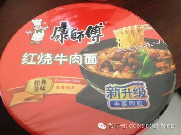 方便面最早進(jìn)入中國(guó)是1986年。在我的記憶中,大概是1991年,就知道了康師傅紅燒牛肉面。作為一家臺(tái)灣企業(yè),康師傅在中國(guó)的Marketing無(wú)疑是成功的。雖然僅僅比統(tǒng)一早15天來(lái)到中國(guó)大陸,但康師傅改良出了適合內(nèi)地人口味的紅燒牛肉面,受歡迎程度遠(yuǎn)遠(yuǎn)超過(guò)了統(tǒng)一的鮮蝦面。一度,康師傅在國(guó)內(nèi)方便面市場(chǎng)的份額超過(guò)98%。紅燒牛肉面至今依然是康師傅最經(jīng)典,最受歡迎的一款產(chǎn)品。