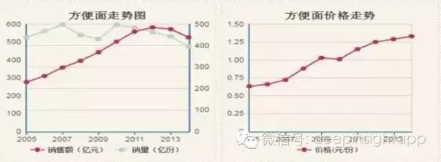 事實(shí)上,方便面整體行業(yè)銷售早就開(kāi)始不行了,連續(xù)四年出現(xiàn)了下滑。而今天,康師傅的利潤(rùn)暴跌僅僅是一個(gè)引子,大家突然發(fā)現(xiàn):原來(lái)方便面賣不動(dòng)了。下面這張圖反映了很簡(jiǎn)單,而深刻的事實(shí)。