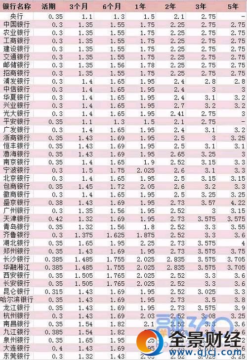 2017銀行最新存款利率公布