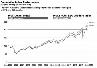 ●從MSCI過去十多年的統計結果看,長期來看ESG策略也能始終保持一定的超額收益(圖表來源:來源:MSCI。統計區間2007.9-2020.12,歷史過往不預示未來表現,投資需謹慎。)
