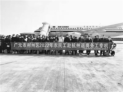 - 首趟農民工返崗復工專機昨日抵杭 63名人員