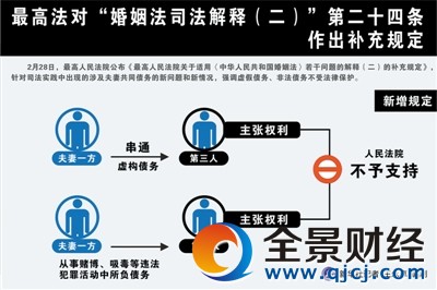 原標題:最高法補充“婚姻法24條”規定:夫妻不用為對方非法債務埋單