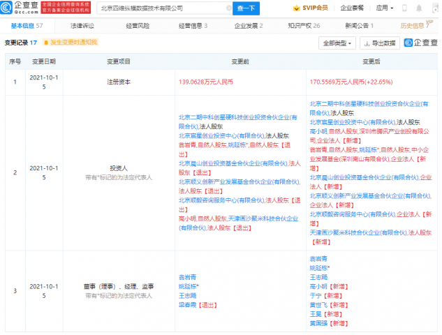 - 騰訊投資四維縱橫 后者法定代表人為姚延棟
