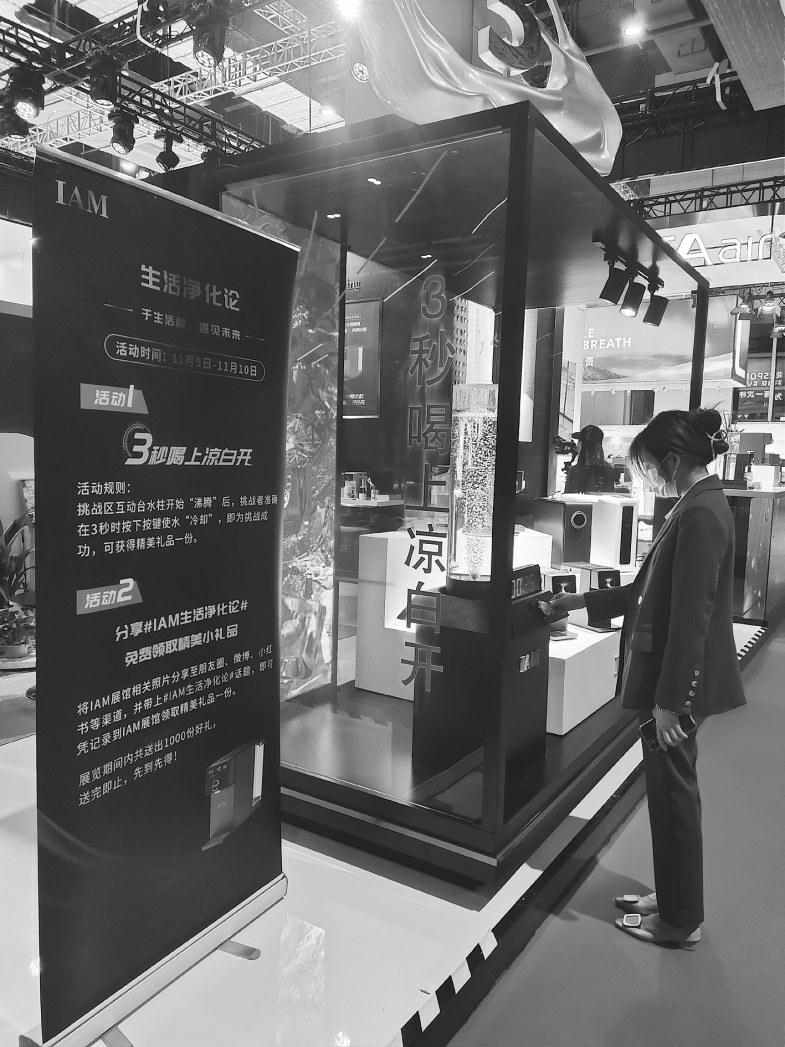 若說在進博會綠色智能家電及家居專區5.1號館有什么讓人印象最深刻,“3秒喝上涼白開”絕對位列其一。