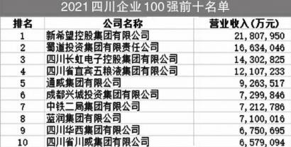- 2021四川100強(qiáng)企業(yè)名單發(fā)布 新希望集團(tuán)居首