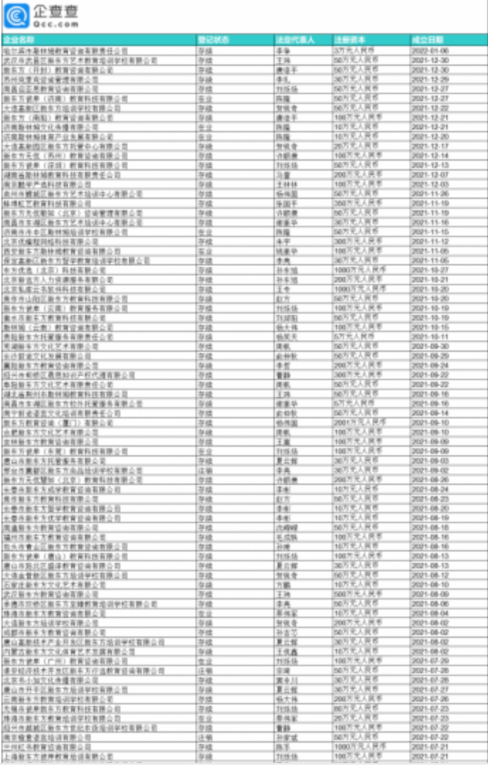 - 新東方平均每2天成立一家新公司 經(jīng)營范圍