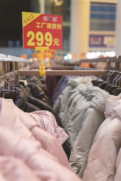 大家最關心的價格,他表示,羽絨服最低只要100元,男女式羽絨服、大衣基本上都是199元、299元、399元、499元虧本賣。“能回一點是一點,一些衣服款式過了這個季,下一季就沒辦法賣了。”楊華說。