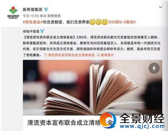 2月6日,新希望集團(tuán)官方微博發(fā)布了清晗基金成立的消息,每日經(jīng)濟(jì)新聞(博客,微博)影視記者亦從新希望相關(guān)人士處確認(rèn)了這一信息。