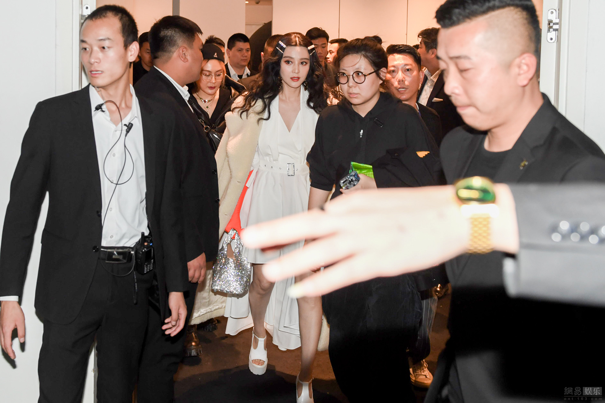今晚,卜柯文春夏成衣時裝發(fā)布會在京舉行,范冰冰意外現(xiàn)身引得媒體熱拍。當晚,范冰冰一襲白裙搭配紅色手套,神采奕奕,觀看走秀過程中與海清不時熱聊。(圖文/小易)