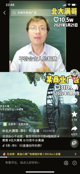 而就在當(dāng)晚,抖音博主“北大滿哥”發(fā)布視頻表示,該商業(yè)廣告的文案幾乎照搬其去年在“小滿”時(shí)發(fā)布的視頻文案。這份堪稱“實(shí)錘”的視頻一出,社交平臺(tái)上,“奧迪小滿廣告抄襲”“劉德華 奧迪”等多個(gè)熱搜詞條居高不下,劉德華、奧迪與其背后廣告創(chuàng)意代理公司也再次站到了輿論的風(fēng)口浪尖。