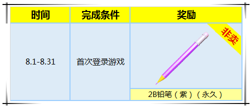 8.1-8.31 登錄游戲就送紫色鉛筆,集齊12色更可獲得專屬座椅、專屬徽記和永久稱號!機不可失!